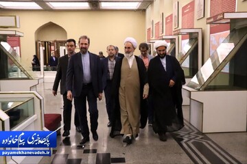 گزارش تصویری بازدید آیت‌الله اعرافی از قرآن منسوب به امام رضا (ع) در موزه ملی ملک