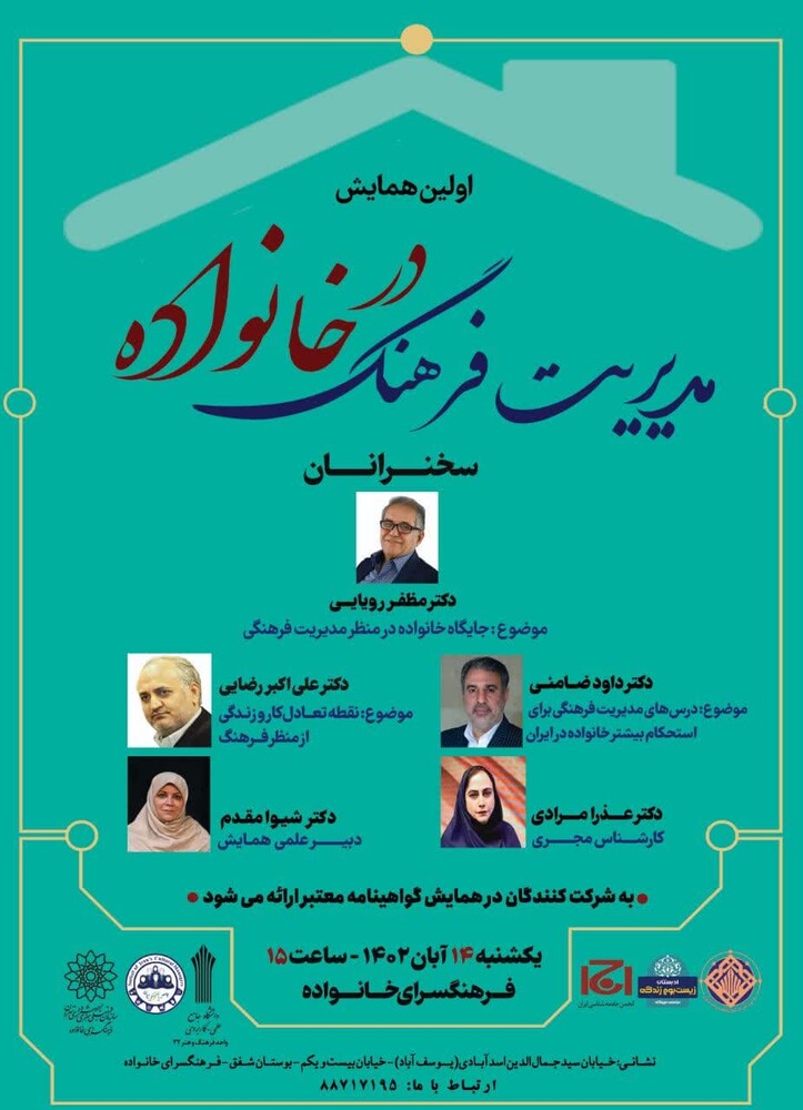 این همایش علمی توسط فرهنگسرای خانواده با مشارکت جامعه مدیران فرهنگی ایران، دانشگاه علمی و کاربردی واحد فرهنگ و هنر ۳۲، گروه آینده پژوهی فرهنگی و اجتماعی انجمن جامعه شناسی ایران، مؤسسه فرهنگی ادبستان زیست بوم زندگی و مرکز آموزش عالی علمی کاربردی فرهنگ و هنر واحد ۵۶ تهران برگزار میشود.