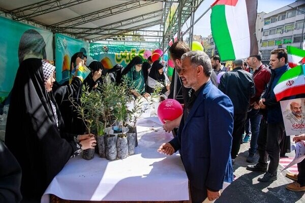 پیام خانواده - اداره کل امور زنان و خانواده شهرداری تهران همزمان با مراسم راهپیمایی روز قدس، نهال‌های زیتون را برای کاشت در اختیار کودکان و نوجوانان قرار داد.