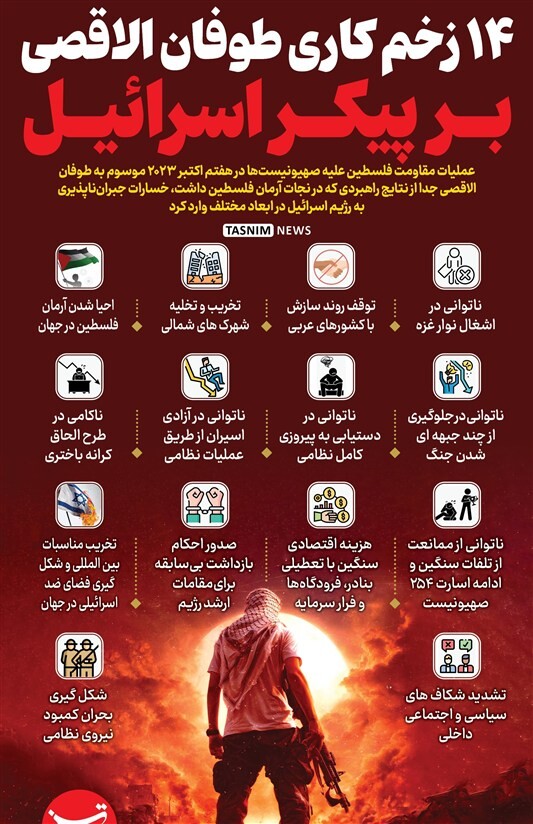 عملیات مقاومت فلسطین علیه صهیونیستها در هفتم اکتبر ۲۰۲۳ موسوم به طوفان الاقصی جدا از نتایج راهبردی که در نجات آرمان فلسطین داشت، خسارات جبرانناپذیری به رژیم اسرائیل در ابعاد مختلف وارد کرد.