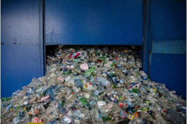 دینی مثال یک بطری آب پلاستیکی را زده است. مانند بیش از ۹۰ درصد از کل پلاستیکها، تولید آن با استخراج نفت و گاز آغاز میشود. سپس مجموعهای از فرآیندهای شیمیایی، آن سوختهای فسیلی را به پلیاتیلن ترفتالات یا PET تبدیل میکنند که بطری از آن ساخته میشود.