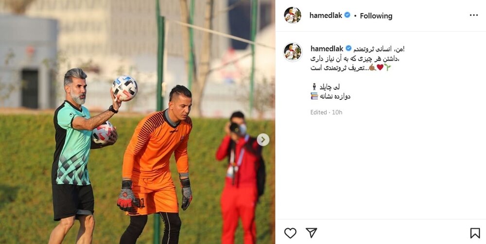دروازهبان سرخپوشان با انتشار سه تصویر همراه با داوود فنایی در تمرینات این تیم و نوشتهای که داشتن یک فرد در کنارش ارزشمند است، نشان داد مشکلی با مربی خود در پرسپولیس ندارد و زیر نظر او مشغول تمرین است.